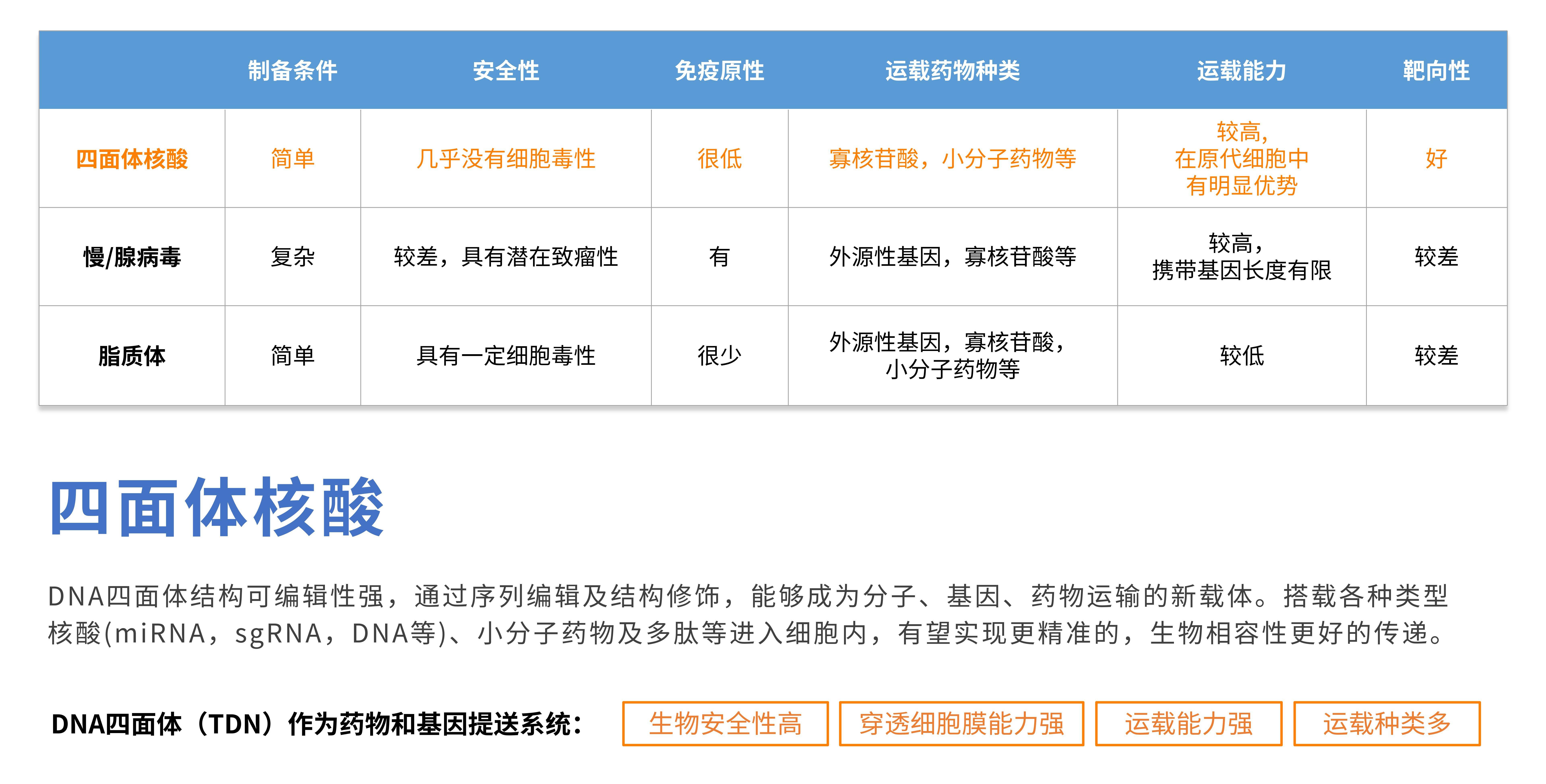 首次合成特定序列、特定尺度、特定空間構(gòu)象和特定生物學(xué)特性的DNA四面體納米材料(TDN)。證實(shí)TDN可高效、自由穿過(guò)細(xì)胞膜,具有良好的生物相容性、生物安全性、低免疫原性、易編輯性、核酸酶抗性和體內(nèi)穩(wěn)定性。并在此基礎(chǔ)上發(fā)展建立基于TDN的新型基因和藥物傳遞系統(tǒng)。