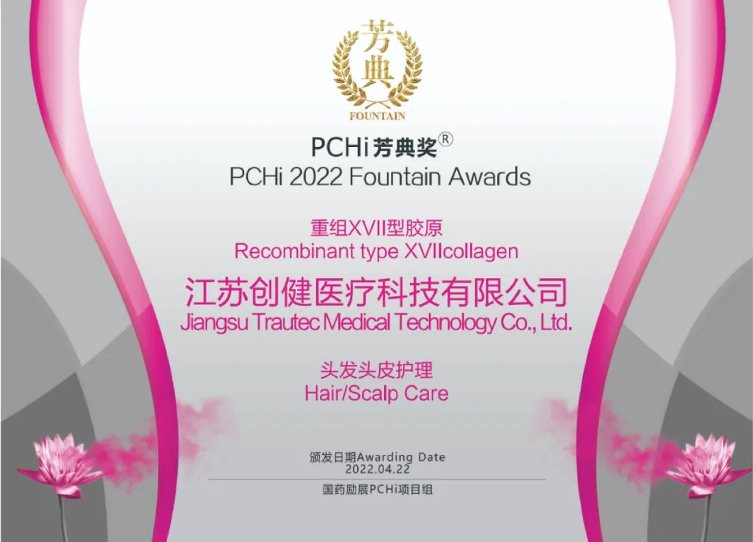 榮獲“PCHi芳典獎原料創新獎”及“榮格技術創新獎”